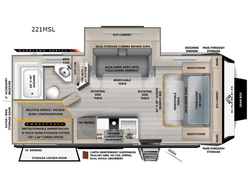 Ember RV Overland Series 221MDB travel trailer highlights: Murphy Bed Bunk Beds ... more about Overland Series 221MDB
