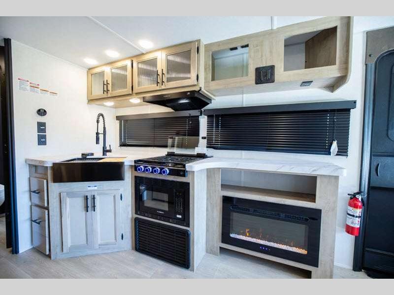 Sleeps 6 Slides 1 Length 34 ft 2 in Ext Width 8 ft Ext Height 10 ft 8 in Int Height 0 ft Hitch Weight 1183 lbs GVWR 9995 lbs Dry Weight 6924 lbs Cargo Capacity 3071 lbs Fresh Water Capacity 52 gals Grey Water Capacity 38 gals Black Water Capacity 38 gals Furnace BTU 20000 btu Available Beds RV King Refrigerator Type 12V Cooktop Burners 3 Number of Awnings 1 Garage Size 11 ft Water Heater Type Tankless AC BTU 15000 btu Awning Info 15' Full Length Power w/LED Light Strip Axle Count 2 Shower Type Standard Solar Wattage 200 watts Similar Floorplans