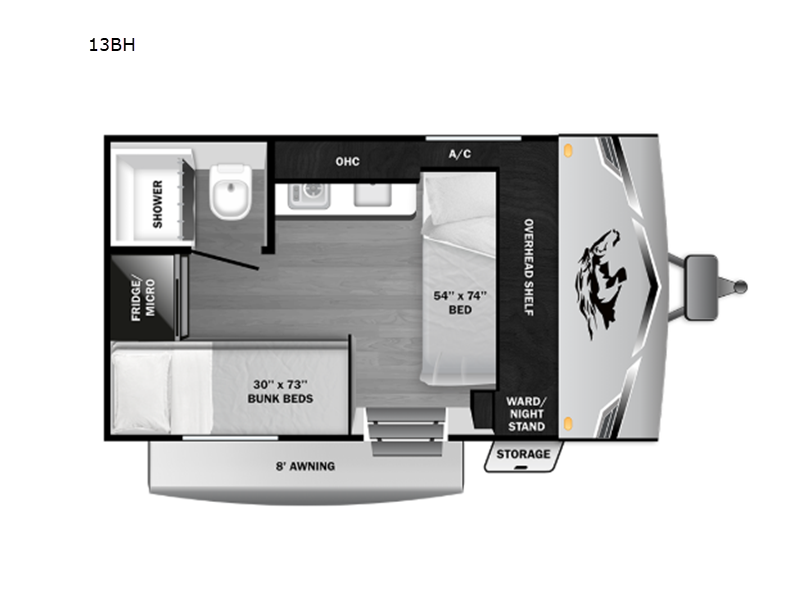 Sleeps 4 Length 0 ft Ext Width 0 ft Ext Height 0 ft Int Height 0 ft Interior Color Coastal Linen Furnace BTU 19000 btu Number Of Bunks 2 Refrigerator Type 12V Cooktop Burners 2 Number of Awnings 1 LP Tank Capacity 20 lbs Water Heater Type Tankless AC BTU 8000 btu Awning Info 8' Power Axle Count 1 Number of LP Tanks 1 Shower Type Standard Electrical Service 30 amp Similar Travel Trailer Floorplans