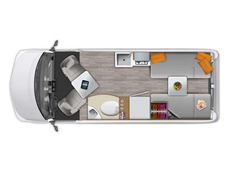 - Pop top sleeping area offers a large bed and storage tray with charging ports